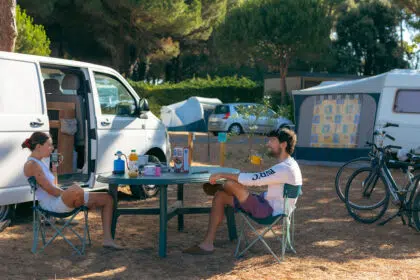 Nos 34 emplacements, d’environ 90 m², accueillent tentes, vans, caravanes et camping-cars dans un cadre arboré et paisible. Ici, on campe à l’ombre des arbres, au plus près de la nature. C’est l’endroit idéal pour les amoureux du camping traditionnel, qui veulent vivre l’expérience rétaise en toute simplicité, au Bois-Plage-en-Ré.