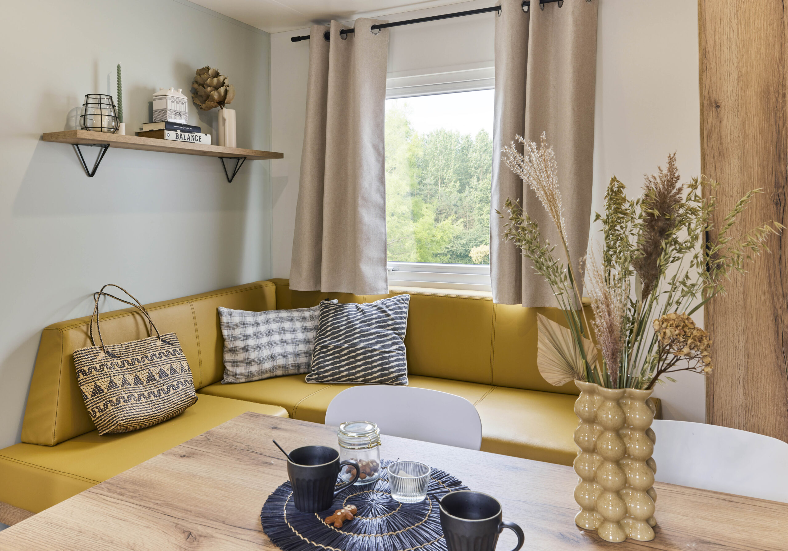 Côté couchages, le mobil-home comprend un lit double (140 cm), deux lits simples (80 cm). Climatisation et chauffage vous garantissent un confort optimal, quelle que soit la saison.