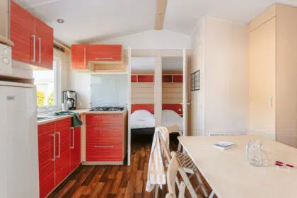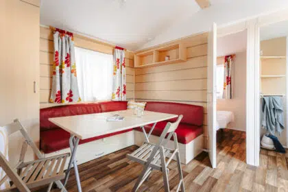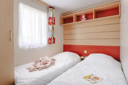 Ce mobil-home vous offre un cadre agréable pour vos vacances, avec une terrasse en dalles gravillonnées équipée d’un salon de jardin, de transats et d’un parasol pour profiter pleinement des beaux jours. À l’intérieur, tout est prévu pour votre confort : le linge de lit, les serviettes de toilette et le tapis de bain sont fournis. Vous bénéficierez également du chauffage dans chaque pièce ainsi que d’une télévision pour vos moments de détente.
